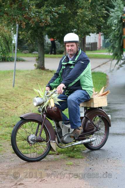 Auch Zweiräder waren beim Umzug dabei. Ein wirklich schöner SR2 (Essig) und ein Fahrrad mit Anhänger (beide festlich geschmückt), fuhren ebenfalls mit.