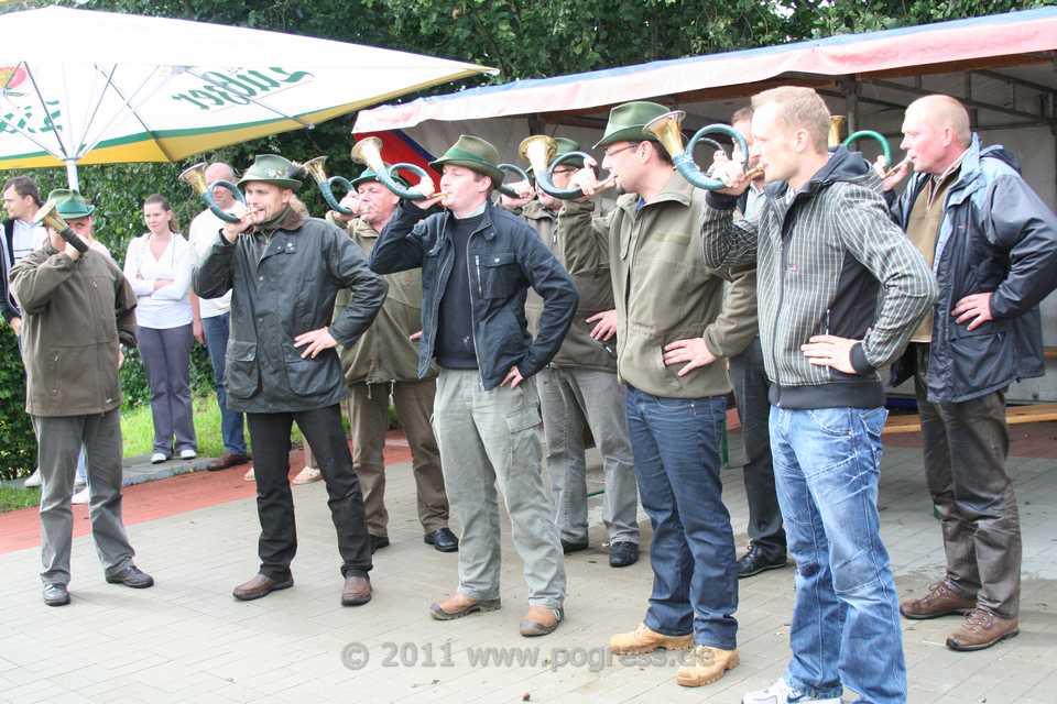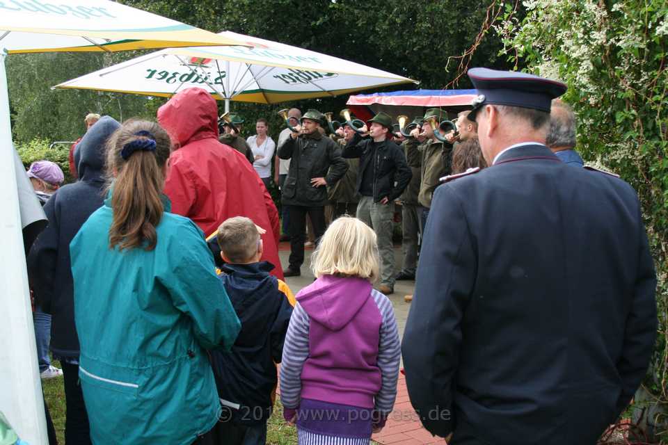 Vor der Eröffnung der Kaffeetafel wurden noch einige mecklenburger Lieder gesungen und den Liedern der Jäger gelauscht, die kräftig in ihre Hörner bliesen.